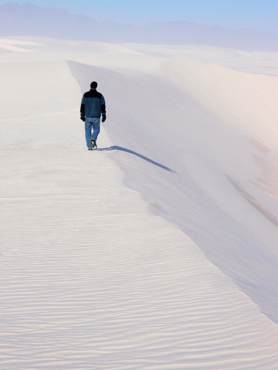 Needless to say it was not the best night’s sleep as there were times I almost felt like the whole truck was going to blow over. We woke early to the wind and decided to just hit the road. We figured we could cook up breakfast at our next stop – White Sands National Monument. After about an hour drive through the barren missile range we arrived at White Sands. The scenery here is simply stunning and entirely unexpected. The rolling white dunes reminded us of the Alaskan winter tundra in a way, and locals were indeed sledding on the dunes to boot! Did you know a few miles north of here is where the U.S. government detonated the first atomic bomb?